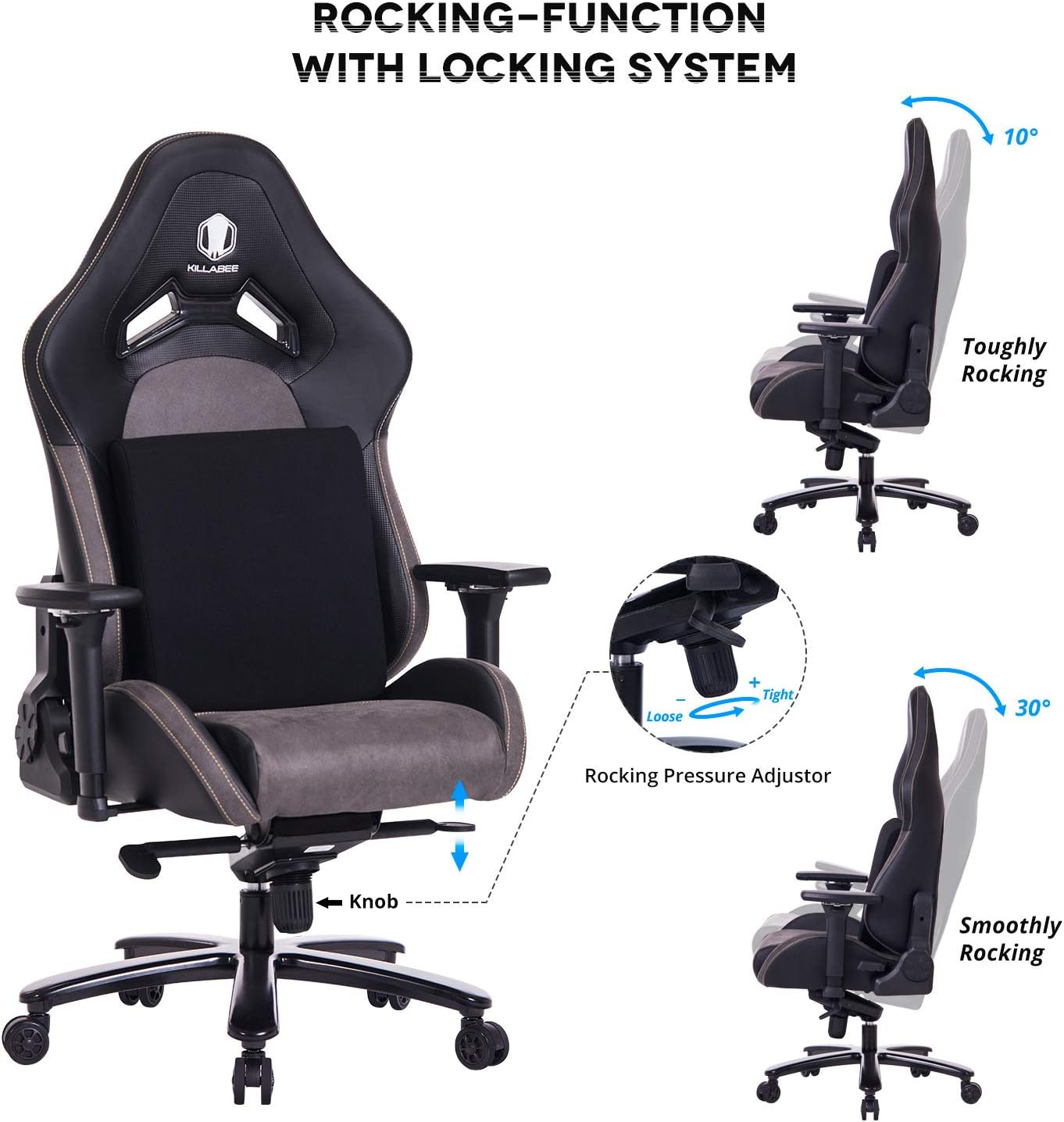 Fantasylab big and tall 440lb metal base gaming chair, memory foam lumbar seat cushion, 4d adjustable arms swivels & reclines ergonomic killabee massage gaming chair high back pu leather pc racing computer desk office swivel recliner with retractable footrest and. As a huge person, comfort is the most important thing that big and tall gaming chairs offer you which normal chairs cannot. Shout out to killabee for realizing big people need gaming chairs too! The killabee 8247 supports up to 440 pounds and fits heights autofull is a chinese maker of pro esports gaming chairs.